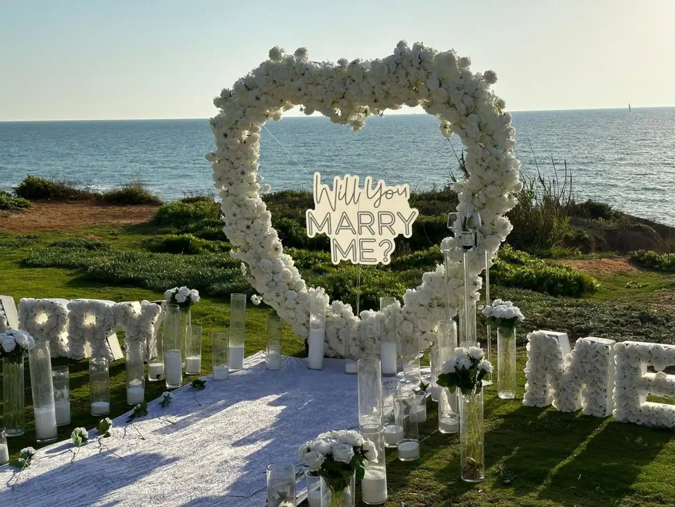 הפקה כוללת את כל מה שצריך כדי ליצור רגע מרגש ובלתי נשכח: עיצוב המקום, שילוט, בלונים, נרות, תאורה, מוזיקה, צילום מקצועי, תיאום לוגיסטי מלא וליווי צמוד – מהרעיון ועד הרגע שבו היא אומרת "כן".