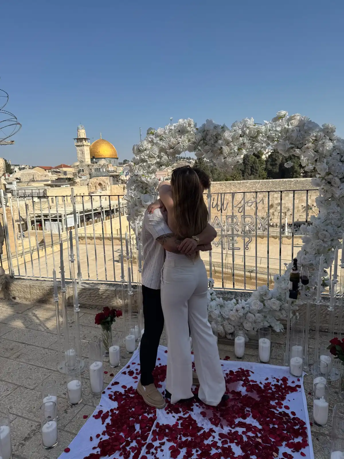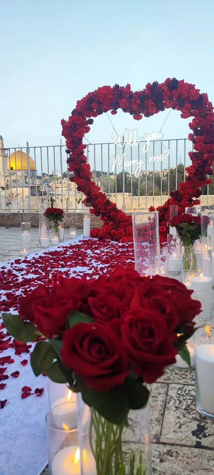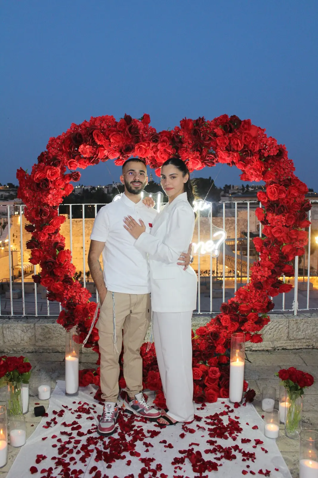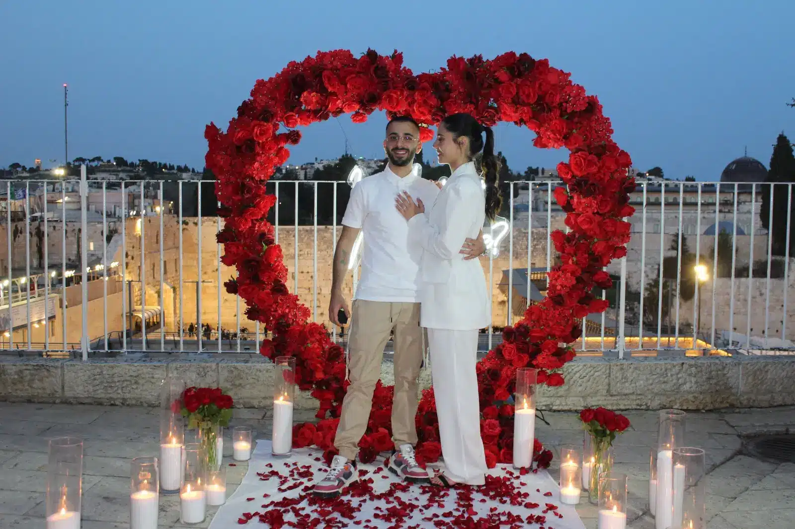 אין דבר רומנטי יותר מהצעת נישואין לילית בירושלים – כשהחומות המוארות נצצות, האוויר הקריר עוטף, והאווירה פשוט קסומה. אנחנו יודעים איך להפוך את הלילה למושלם: נגיע עם תאורה רומנטית ומדויקת שתאיר את הרגע, תדגיש את היופי של הלוקיישן, ותיצור אווירה עוטפת ואינטימית. כך תיהנו מהצעה שתראה מדהים בתמונות ותישאר חקוקה בזיכרון לנצח.